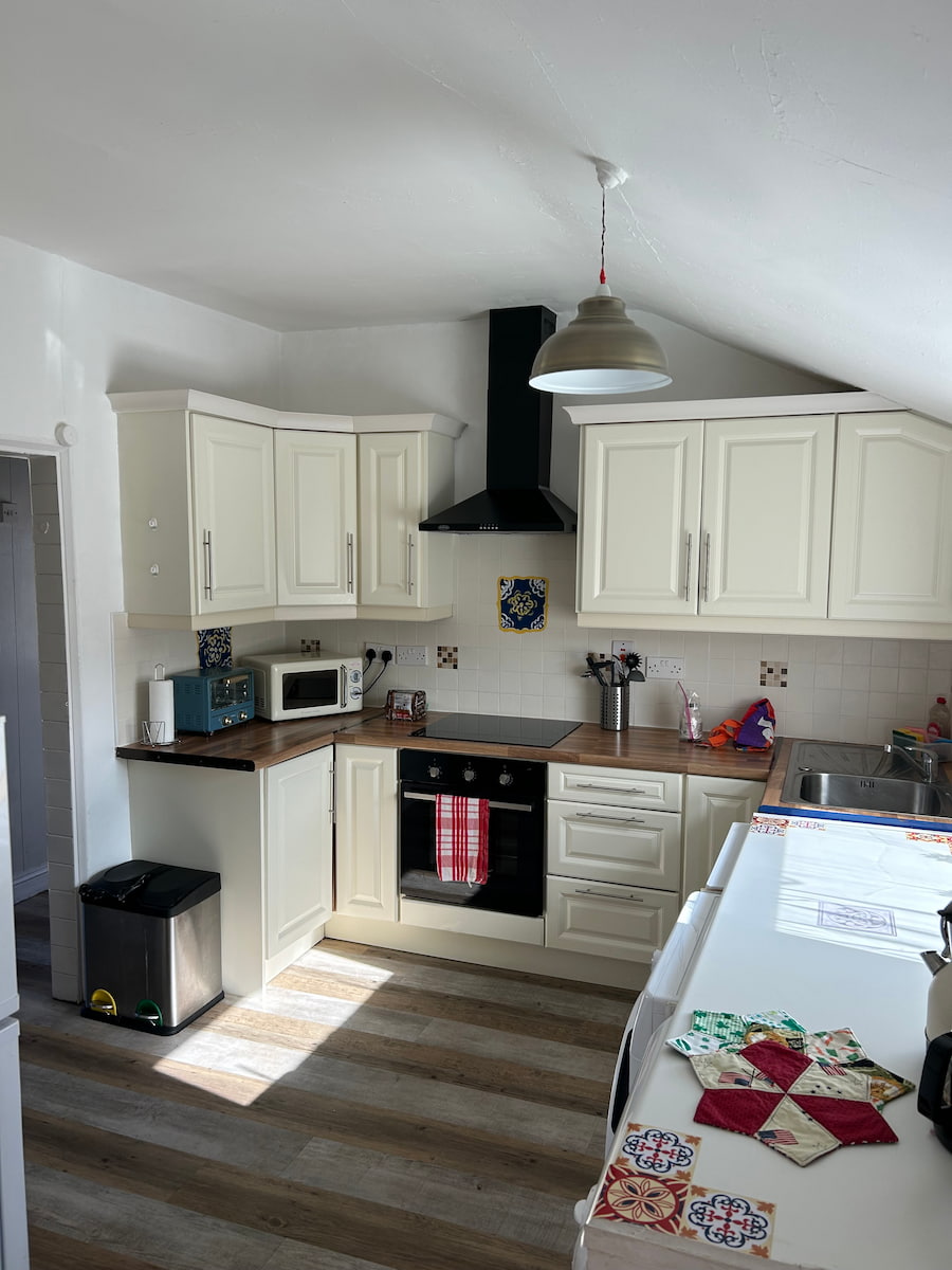Wexford Centre Apartment offers comfortable and modern accommodation in the heart of Wexford. The apartment features a fully equipped kitchen with all the essentials, including a dishwasher, oven, and microwave. It also has a spacious living area with a flat-screen TV and a private bathroom. Ideal for families or groups, the apartment provides a convenient base to explore the town, with local attractions, shops, and restaurants within walking distance. The property also includes a private parking area. Additional facilities include a washing machine, tumble dryer, and ironing facilities. The apartment is within 5 minutes’ walking distance of the train and bus station and Wexford Opera House.