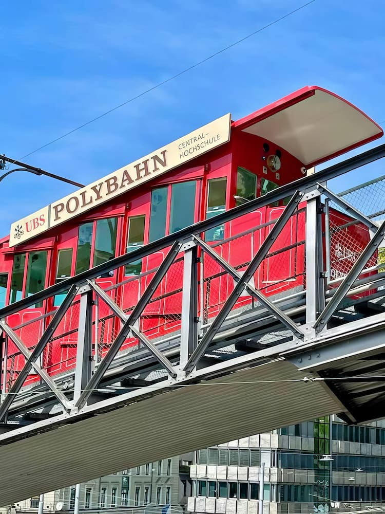 🚠 When visiting the trendy Zürich West district, don’t miss a chance to ride the Polybahn funicular railway. This little train from 1886 is fun experience that also helps you efficiently ascend the steep hillside.