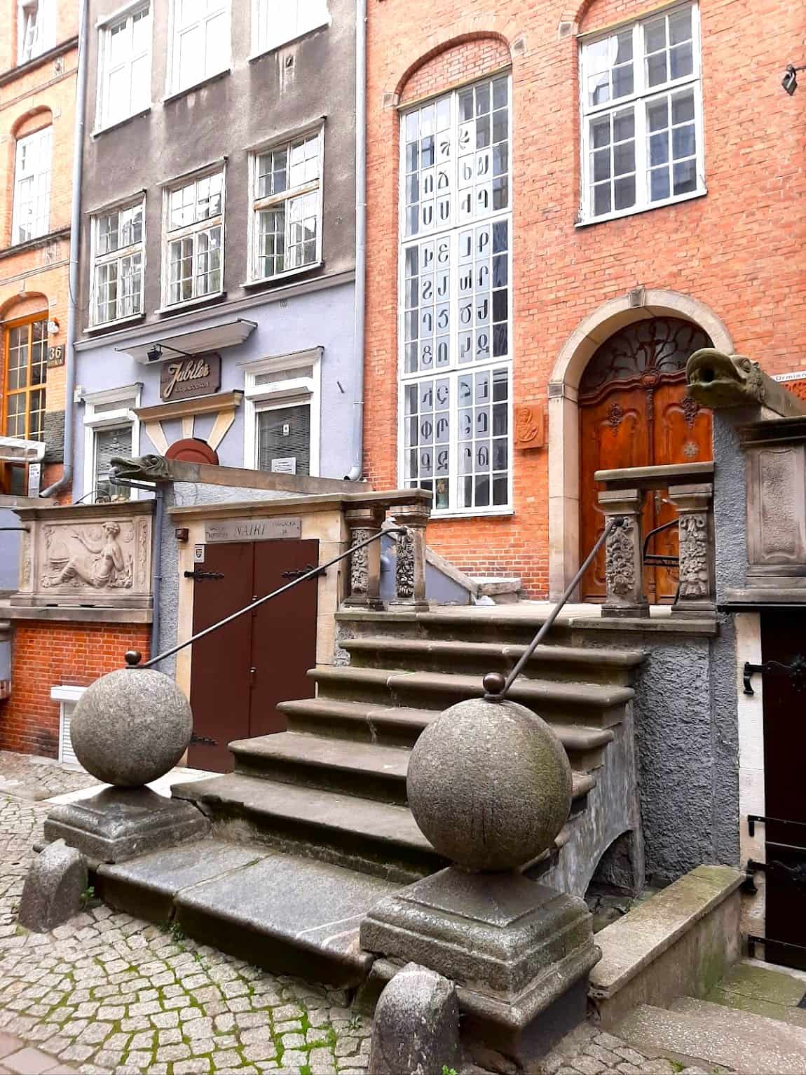 Historisk kornlagerarkitektur. De restaurerede kornlagre i røde mursten skaber en fantastisk arkitektonisk kulisse, hvor nogle af bygningerne stammer helt tilbage fra middelalderen. Disse bygninger blev engang brugt til opbevaring af korn, som gjorde Gdansk rig, og i dag huser de museer, gallerier og kulturelle rum. Kornlageret Blue Lamb fungerer som et specialmuseum med fokus på lokal madhistorie og arkæologiske fund.