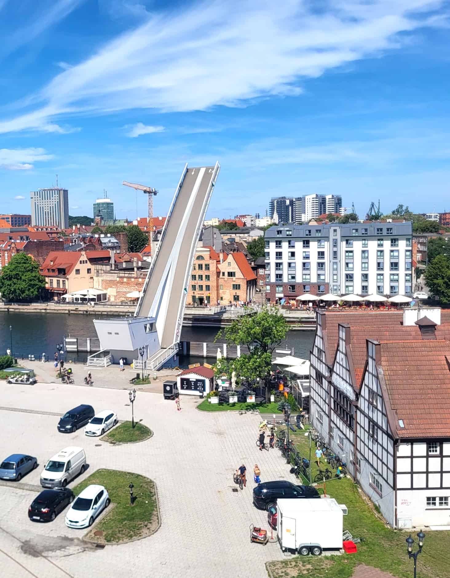 Fremtidsorienteret atmosfære. Igangværende byggeprojekter udvider fortsat øens tilbud, og nye udviklingsprojekter åbnes regelmæssigt for offentligheden. Den svingbro for fodgængere, der forbinder den gamle bydel med havnefronten, repræsenterer den moderne ingeniørkunst, der komplementerer den historiske arkitektur og skaber en unik blanding af det gamle og det nye Gdansk.