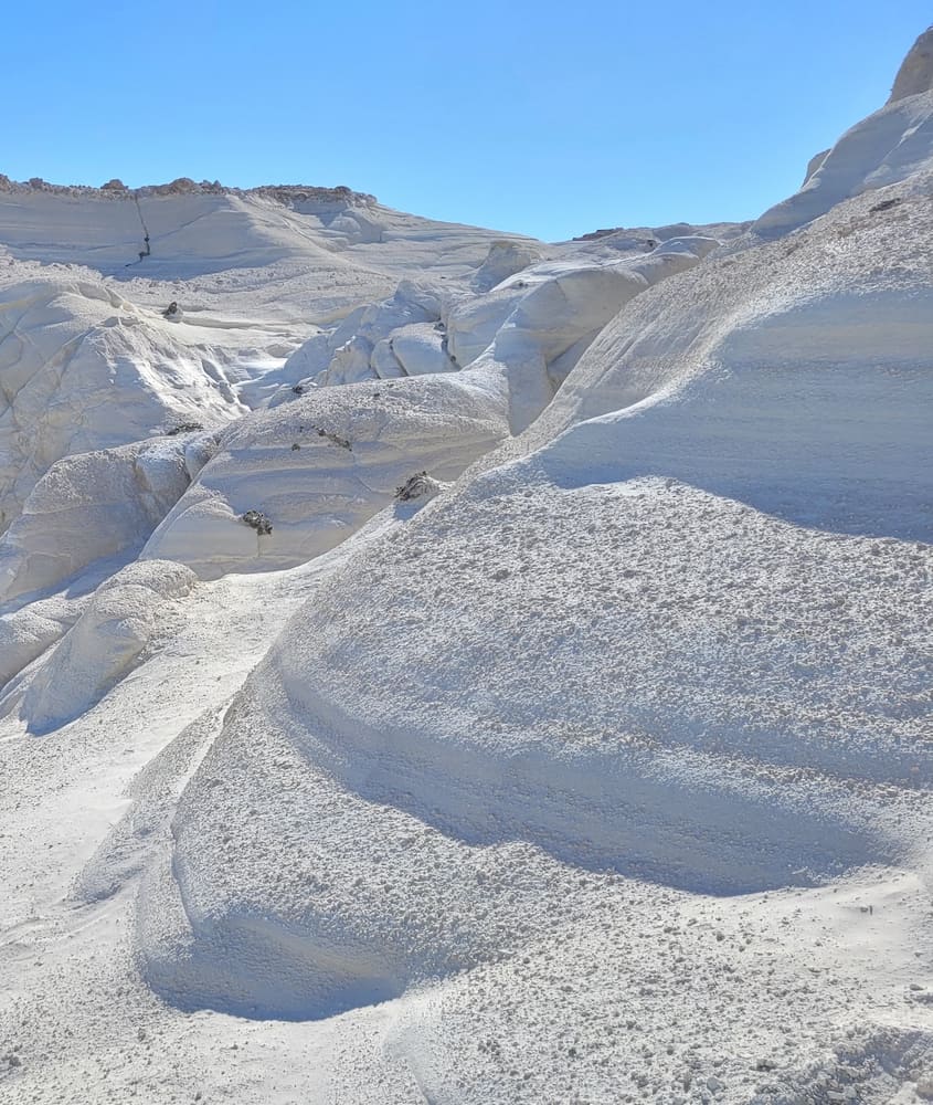• Besøg Sarakiniko Beach, et overjordisk landskab af hvide vulkanske klipper og turkisblåt vand, kun en kort køretur fra Mandrakia.