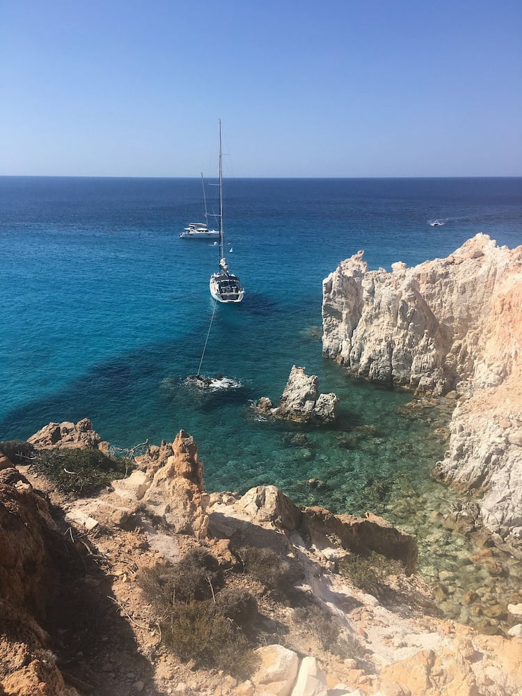Adanın güzelliğini gerçekten deneyimlemek için Milos’ta en az 5-7 gün kalmanızı tavsiye ederim. Milos, Sarakiniko Plajı’ndaki renkli volkanik kayalar ve diğer dünya manzaraları gibi ana şehirlerin ötesinde sunabileceği çok şey var.