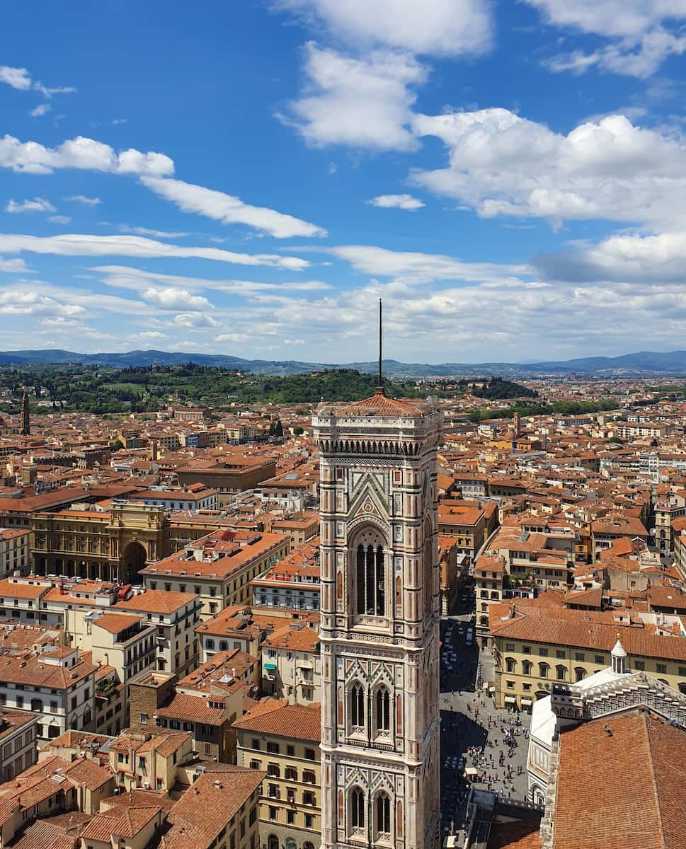 🏰 Tarihi Floransa’yı Keşfetmek: Toskana’nın başkenti Floransa, Rönesans sanatı, mimarisi ve tarihiyle dolup taşan bir şehirdir. Sokaklarında dolaşırken Michelangelo ve Leonardo da Vinci gibi efsanevi sanatçıların varlığını hissedeceksiniz. Maceranıza, Brunelleschi tarafından tasarlanan çarpıcı kırmızı kiremitli kubbesiyle ikonik Floransa Katedrali’nin ufuk çizgisine hakim olduğu Piazza del Duomo’da başlayın. Kubbenin tepesine tırmanmak şehrin ve çevredeki Toskana kırsalının panoramik manzarasını sunmaktadır.