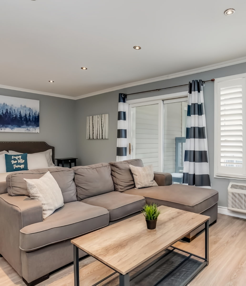 Blue Mountain Studio Oasis offers a cozy studio accommodation with modern amenities. The studio features a fully equipped kitchenette with a microwave, fridge, and coffee maker. There is a flat-screen TV and a private bathroom with complimentary toiletries. The property includes access to a seasonal outdoor pool and hot tub. Check-in is from 16:00, and check-out is until 11:00. Smoking is prohibited, and pets are not permitted. Nearby attractions include Blue Mountain Village and various hiking and skiing trails. On-site parking is provided.