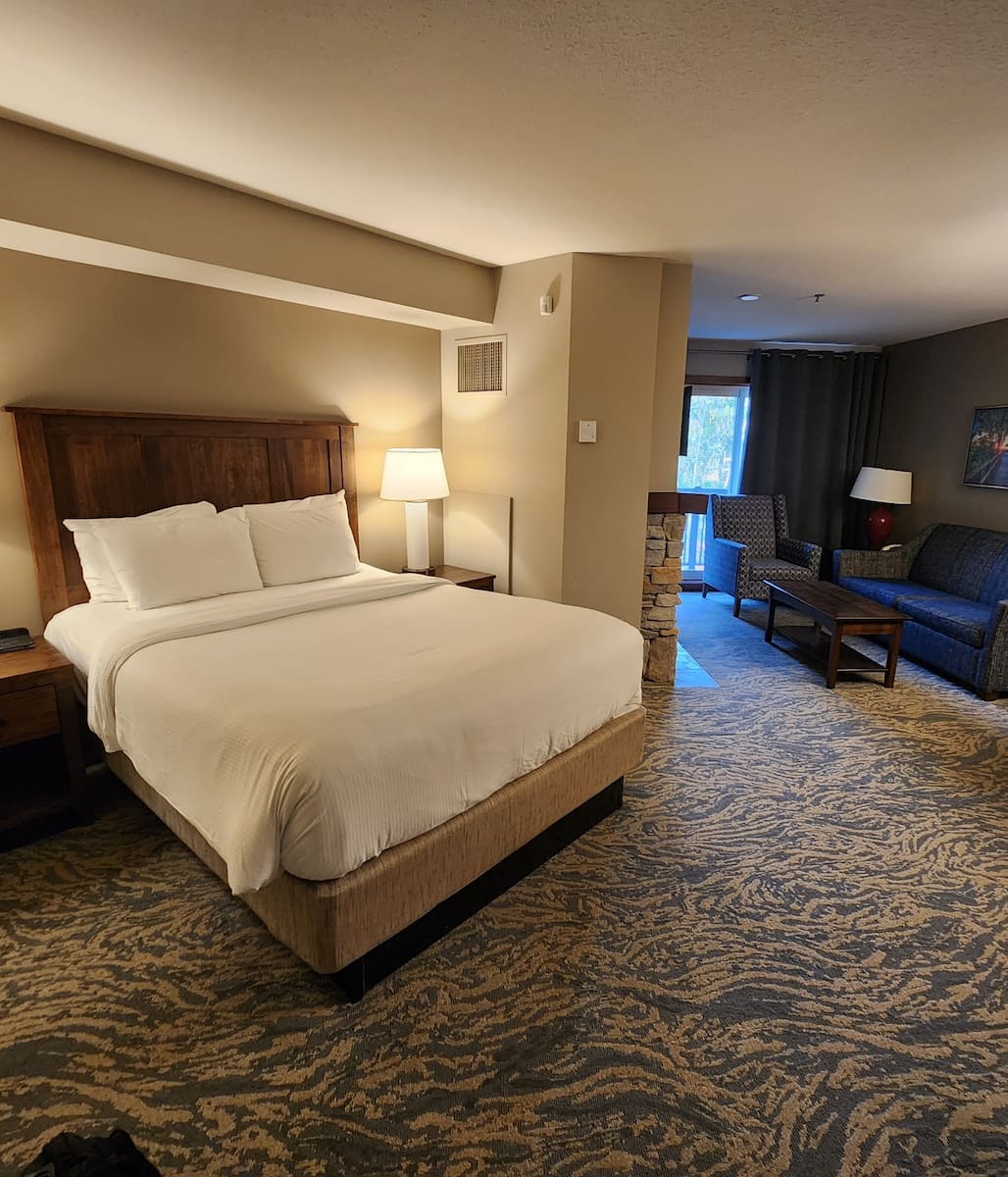 This upscale resort features spacious rooms and suites with kitchenettes, fireplaces, and balconies. Amenities include an outdoor pool, indoor/outdoor hot tubs, a fitness center, and a children’s splash pool. On-site dining is available at Oliver & Bonacini Café Grill, which offers all-day dining with a focus on locally sourced ingredients. The hotel offers ski storage and equipment rental. Activities include golfing at nearby courses, hiking on local trails, and cycling. Valet parking is available for a fee. The resort also features a business center and meeting facilities. Check-in is from 16:00, and check-out is until 11:00. The hotel offers a 24-hour front desk, concierge service, and room service. Pets are allowed for an additional charge. During summer, guests can enjoy the private beach area and water sports facilities at nearby Northwinds Beach.