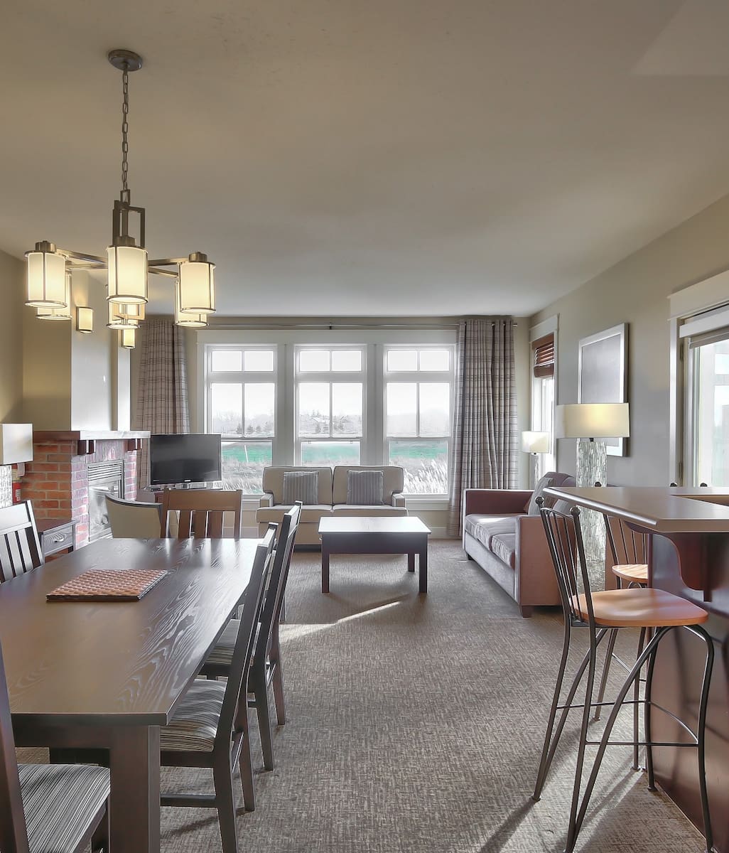 The Lake at Blue Mountain offers luxurious condo-style accommodations. Each unit features a full kitchen with stainless steel appliances, a living area with a fireplace, and a private balcony or patio. The property offers a hot tub, an outdoor pool, and fitness center. Free parking is available, and the hotel is pet-friendly (charges may apply). The property offers easy access to Blue Mountain Village, ski slopes, and golf courses. In-room amenities include flat-screen TVs, washer/dryer, and air conditioning. Check-in is from 16:00, and check-out is until 11:00. During winter, guests can enjoy skiing and snowboarding, while summer activities include hiking, mountain biking, and golfing. The hotel also offers a shuttle service to the Blue Mountain Village and ski lifts.
