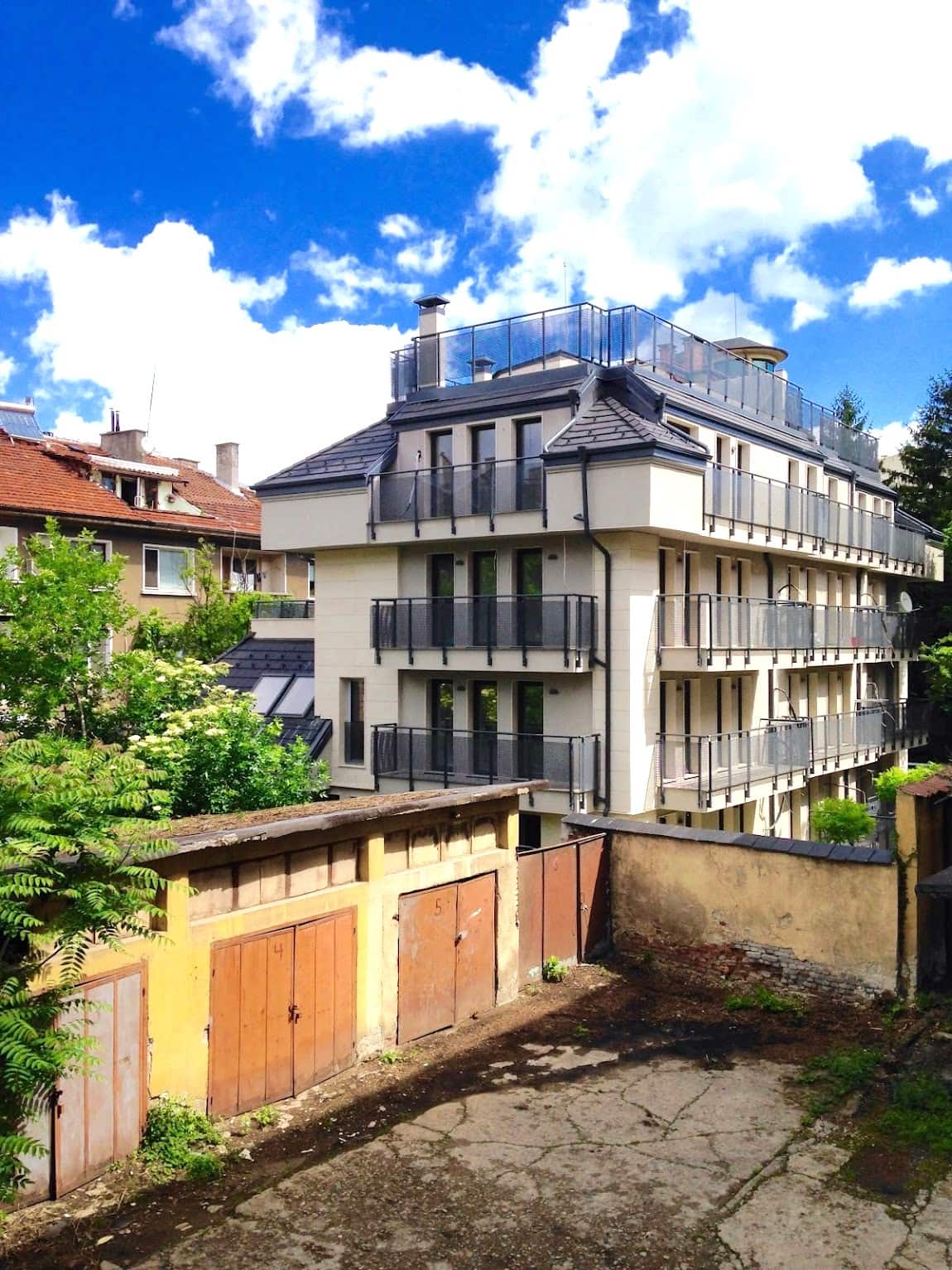 Peaceful atmosphere. The neighborhood feels like a mountain village with tree-lined streets, small gardens, and the sound of wind through leaves. Boyana Residence area offers the quietest streets, while Boyana Park (open 24/7) provides walking trails and benches for mountain views.